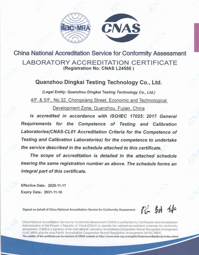 Consumer Product Testingquanzhou dingkai CNAS2026-04-21Details Consumer Product TestingJewelry Recall Notification - Report1-20262026-04-10Details Consumer Product TestingToy Products Recall Notifications-2026 report 022026-03-31Details Consumer Product TestingToy Products Recall Notifications-2026 report 012026-02-12Details Consumer Product TestingToy Products Recall Notifications-2025 report 122026-02-03Details Consumer Product TestingTextile & Leather & Shoes & Bag Products Recall Notifications-2025 report 042026-02-03Details