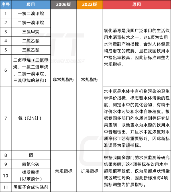 新标准增加了4项扩展指标。在我国某些地区以及一定时间或特殊情况下在饮用水中的浓度水平可能带来健康风险或对水质造成影响,因此新增修订为扩展指标:
