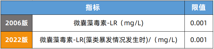 因微囊藻毒素-LR只有在藻类暴发时才有可能出现暴露风险的考量,新标准补充该指标适用条件,添加了条件为藻类暴发情况发生时测定。