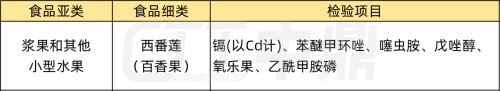 涉及苹果(啶虫脒、毒死蜱)、枣(氰戊菊酯和S-氰戊菊酯)、草莓(敌敌畏)、香蕉(多菌灵、甲拌磷、烯唑醇、噻唑膦)、火龙果(氟虫腈)、杨梅(苯甲酸及其钠盐、敌敌畏)等。